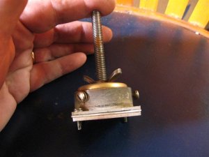 perforé un orificio en la chapa y ajusté la varilla roscada que va en el caño