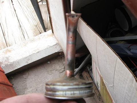 El tubo grueso de de diámetro 8 a 10 mm sobresale fuera de la tapa unos 8 cm, y el mas fino apenas sobresale hacia afuera y hacia adentro unos 3 cm, el tubo mas grueso debe tener una leve curva que lo lleve sobre el tubo mas fino, además se lo cierra en la parte superior, ver foto