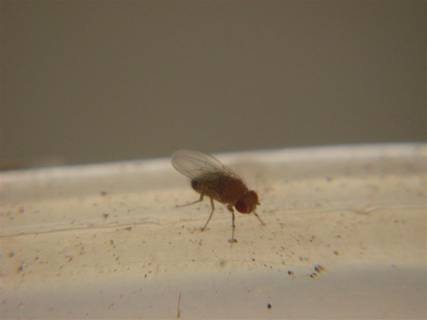 Esta es la mosquita, probablemente Drosophila simulans que es mas frecuente que melanogaster sin embargo a los efectos de ver los cromosomas gigantes  hay pocas variaciones