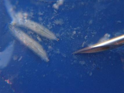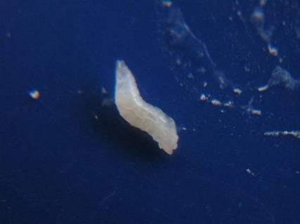 La larva tiene unos 3 mm de largo a los 6 días que es el momento de separarlas para disecarlas (Por favor ecologistas no joder con eso que soy cruel y mato animalitos, son gusanos…)