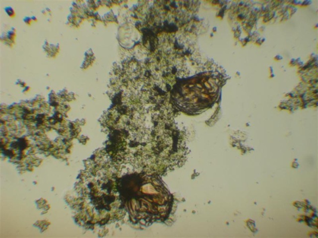 Una vez seca tratamos de encontrar los quistes que se verán de esta manera
