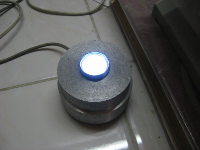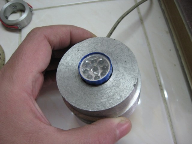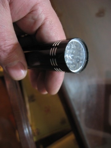 Con una linterna de leds, para el trabajo utilicé una igual que esta, pero de color azul