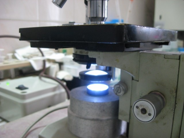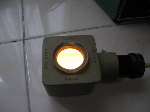 La reforma de mi microscopio LOMO, este microscopio es muy antiguo tiene mas de 30 años y además tiene una buena campaña de uso, originalmente traía una lámpara de 25W que se conectaba directamente a 220v sin transformador, lo que a mi gusto lo hacía peligroso (electrocución) y la iluminación era de tono amarillento, traía un concentrador hecho con una lente convergente.