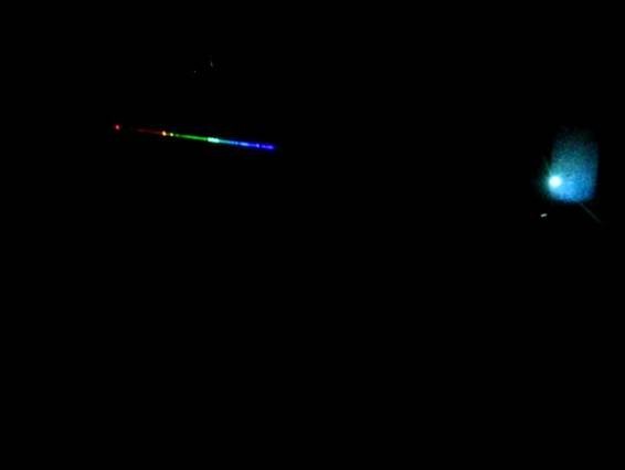 He colocado un trozo de red de difracción de 1000 líneas por mm pegada con cinta transparente en la lente de la cámara, se puede usar un trozo de CD en su lugar.