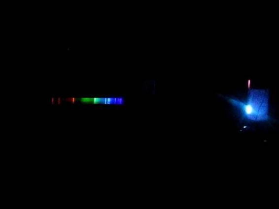 Después de varias pruebas he logrado encontrar la forma de capturar los espectros del plasma, según que metal se volatiliza, siguiendo la técnica que nos enseña Alberto Villalobos (aewolframio de CCAA) colocando una red de difracción delante la lente de la cámara, para mas detalles en su blog http://hombrosdegigantes.blogspot.com/2008/04/digitalizacin-y-anlisis-de-espectros.html