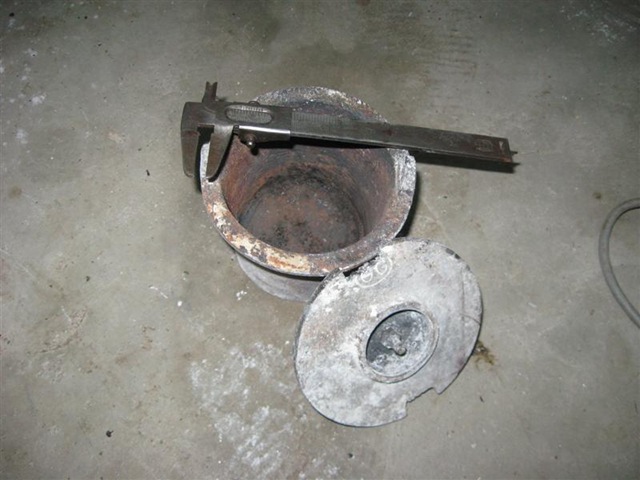 Hay que poner un crisol con tapa dentro del horno, esta en las fotos, se trata de un recipiente de metal, fundición donde se coloca el metal a fundir, se puede fabricar con latas de conserva de hierro pero duran para una sola fundición y hay que ser muy cuidadoso porque si se rompe y te cae el metal hirviendo te puede causar graves quemaduras