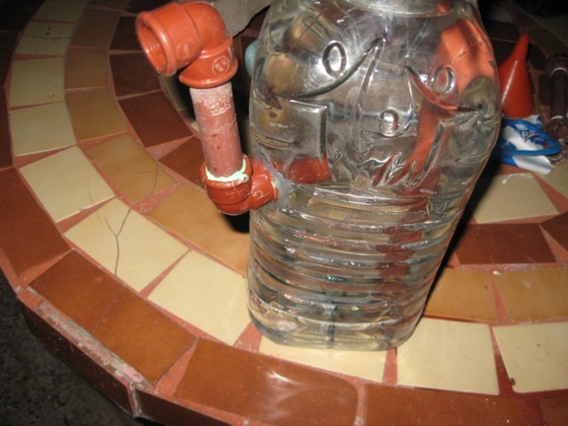 Esta foto muestra el dispositivo armado  y lleno de agua para verificar la estanqueidad del mismo.