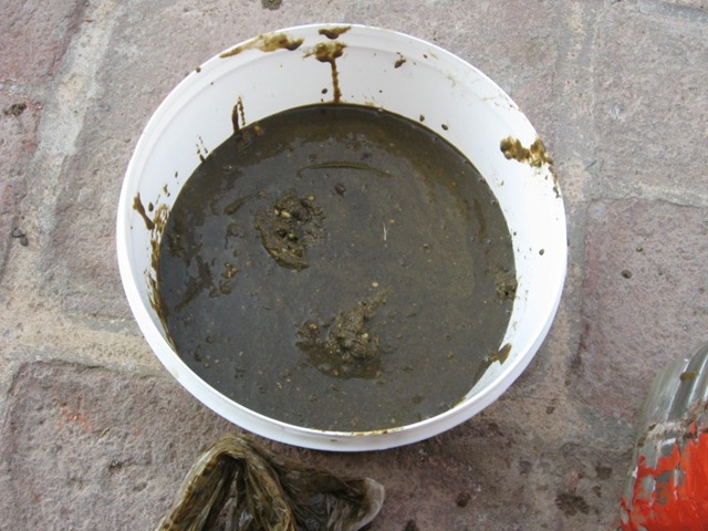 Este fue el inoculo que agregue al BD, lo recomiendo especialmente ya que en muy pocas horas comenzó a generar metano, se trata de rumen, los vacunos tienen varios estómagos, en realidad varios compartimentos donde va pasando el alimento, una vez come el animal lo manda a al 1er estomago, durante un tiempo está ahí y luego lo regurgita nuevamente a la boca y el animal hace el rumeado, mastica nuevamente ese contenido del primer estómago y lo envía a otro compartimento, en este hay bacterias , hongos y otros microorganismos que trabajan en anaerobiosis, este es el contenido que nos interesa, si se llegan a algún lugar donde faenan animales van a conseguir este material.  Como se ve en la imagen parecen heces de vaca, no tiene prácticamente olor y es muy rico en bacterias anaerobias, de hecho en 24Hs que puse este inoculo  comenzó a generar.