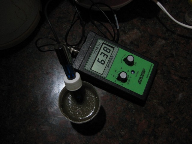 Midiendo el pH a los 3 días del cargado del BD, esta un poco bajo, según dijimos el pH óptimo es de 6,5 a 7,5 sin embargo en esta etapa de la digestión que es fermentativa el medio es mas ácido, entre 5,5 y 6,5 así es que dejaremos correr el tiempo he iremos midiendo. A los pocos días agregue agua con cal para alcalinizar porque el pH se había bajado a menos de 5