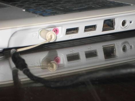 Se conecta el parlante a una de las salidas y una improvisada entrada se conecta a la salida de auriculares de la PC