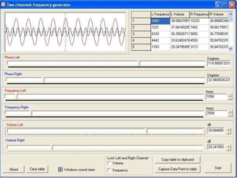 Recomiendo tambien usar como generador de audio el programa Visual Analyzer http://www.sillanumsoft.org/