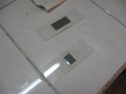 Las muestras en campana de vacío a 10^-7 torr (vacío de bomba difusora)