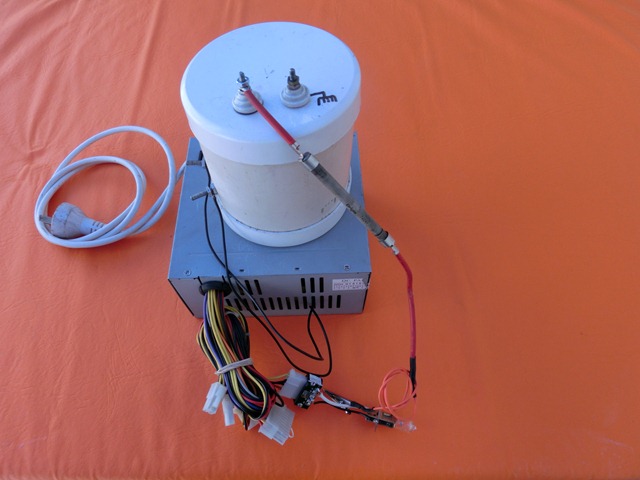 Como puede verse en este esquema básico del purificador electrostático entre las paredes del mismo que es de metal y el hilo central que en este caso es un muelle o resorte se produce un fuerte campo eléctrico, esto ioniza las partículas de polvo y humo que se cargan de electrones y por consiguiente son atraídas hacia el resorte central positivo donde quedan pegadas a él, el polvo que se desprende puede salir por un agujero en la parte inferior del tubo, como ven es muy simple y muy eficiente, he leído por ahí que este sistema retiene hasta el 99% de partículas del aire