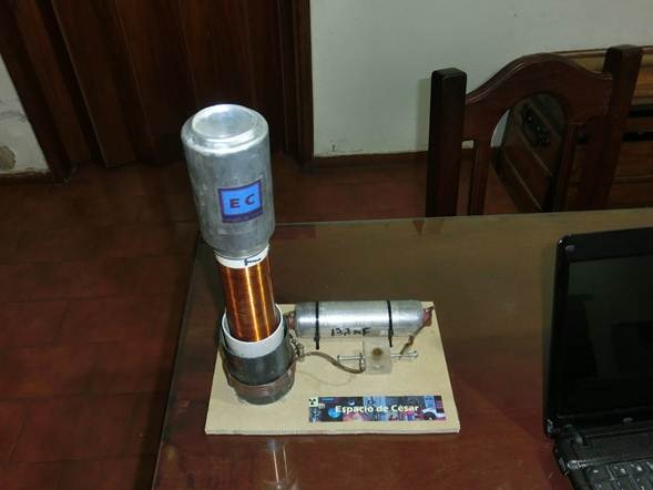 Para este experimento vamos a necesitar una fuente de alta tensión, cualquier fuente hecha con un flyback, puede usarse el van der graff o la máquina de wimshurst sin problemas. También vamos a necesitar un recipiente al que vamos a acondicionar unas placas de metal en este caso use un tubo de vidrio de unos 2,5 cm de diámetro por 6 cm de largo abajo pegue con siliconas una de las placas metálicas y el otro extremo tiene su tapa removible , necesitaremos una fuente de humo, podemos usar un tubo de papel como verán más adelante