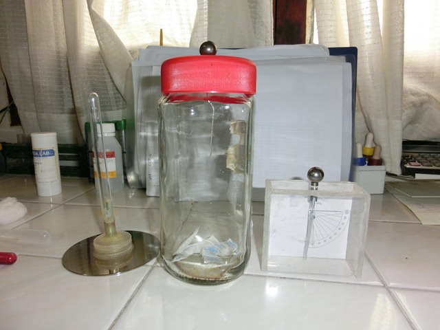Hice muchos electroscopios, pero este que voy a comentar ahora me gusta porque una vez cargado permanece mucho tiempo en esa condición, la mayoría de los electroscopios que hice en apenas unos minutos perdían las cargas y las laminillas se iban acercando hasta unirse, este puede quedar hasta 2 y 3 horas con las láminas separadas.