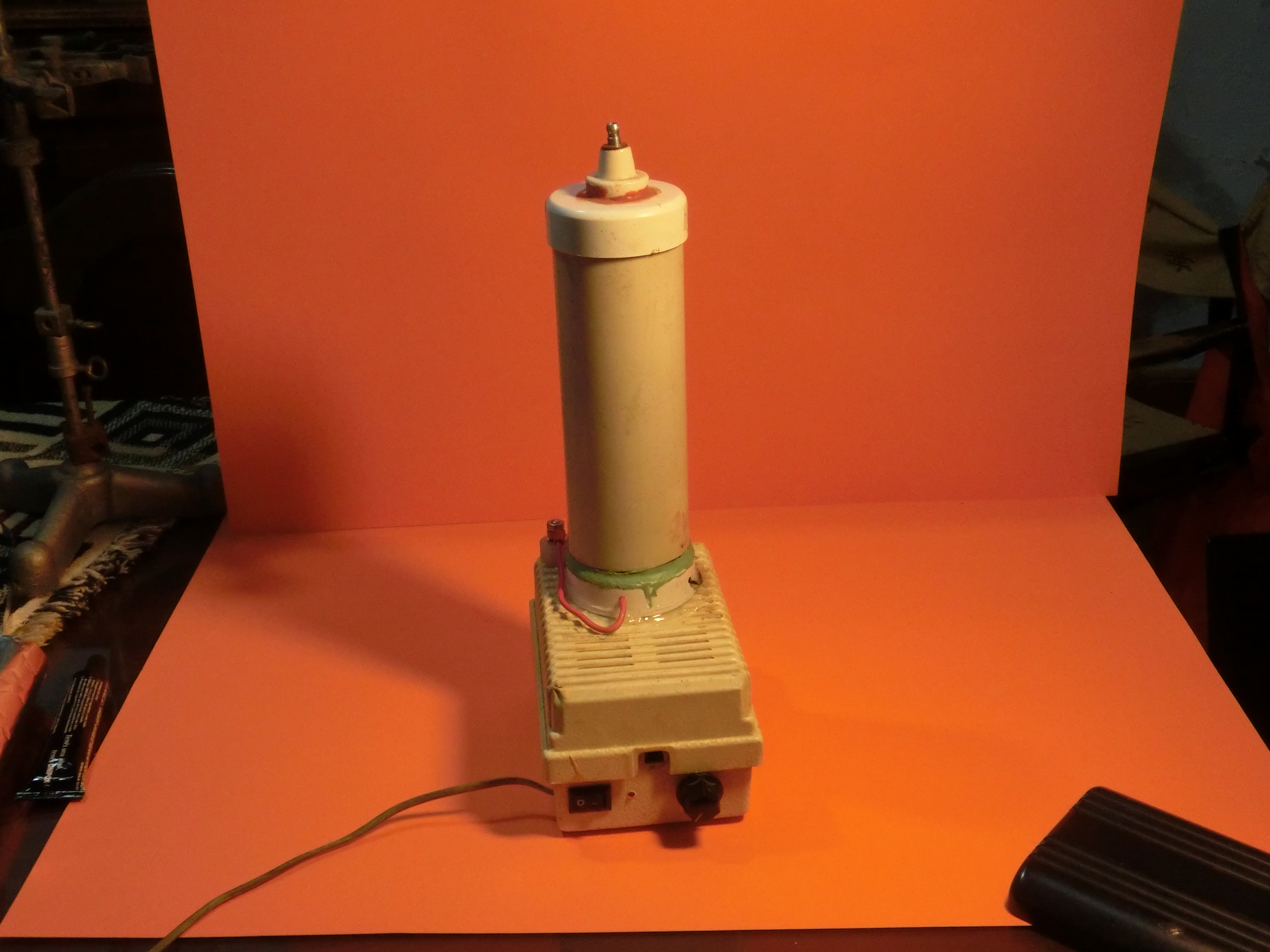 Para este experimento vamos a usar una maquina de winshurst casera, la misma que vieron en el experimento del ciclotron didáctico, tambien se puede usar la fuente que mostré para el lifter en lugar de la máquina electrostática, como a mi me gusta asi bien vintage usaré la winshurst, tambien necesitamos una lámpara antigua de televisión que es una rectificadora de alta tensión y era muy común en aparatos de televisión a lámparas de los años 1.970 y 1.980, su denominación es 1B3 y se puede comprar en ebay tambien he visto varias ofertas en mercadolibre por solo unos pocos pesos, tambien hay otros tubos que son muy emisores de Rx como el 2X2A, el…. , etc, casi todas las lámparas rectificadoras de alta tensión de TV antiguas tenían esta propiedad de emitir Rx.
