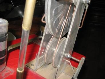 Se fabrica un dispositivo con dos latas de gaseosa una lapicera plástica y un péndulo hecho con un cabello y uno de los anillitos de apertura de las latas (ver figura) a una de las latas se la conecta con un cable a la esfera y a la otra con un cable a tierra, es hecha a andar el generador provocando un golpeteo del péndulo contra ambas latas varias veces por segundo.