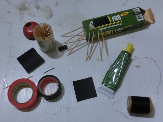 Ponemos cemento en los palillos mas o menos hasta la mitad también al clavo hasta la mitad.