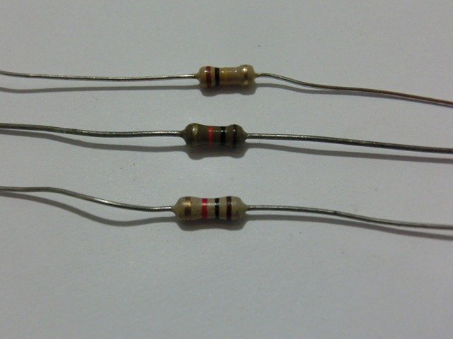Esta punta lleva tres resistencias, una de 100mil (marron negro amarillo), una de 10 mil (marron negro naranja) y una de mil marrón negro rojo, Necesitaremos una llave inversora con la que se conmuta atenuación por 10 y por 100.