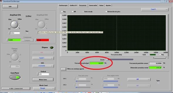 El frecuencímetro del Souncard puede leer sonidos hasta con décimas de herz, sin embargo en la práctica esos dos dígitos se ponen bastante variables a la hora de medirlos, así que nos conformaremos con el entero de los herz y el primer dígito después de la coma si vamos muy fino y con paciencia.