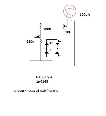 El instrumento que usé es de corriente continua DC y según reza en el panel es de 100uA, como la línea tiene corriente alternada requiere de un circuito adicional