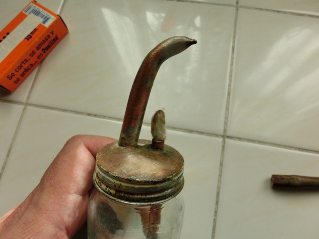 A la tapa del frasco le vamos a realizar dos agujeros, uno de 5 mm mas o menos en el centro y otro de 10 mm mas hacia afuera. Se prepara pegamento de dos componentes generosamente y se introducen ambos tubos pegándolos a la tapa del frasco, el tubo mas grande debe quedar inclinado para que quede sobre el tubo mas chico y la perforación debe quedar también sobre el tubo mas pequeño