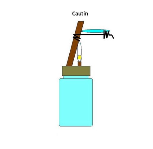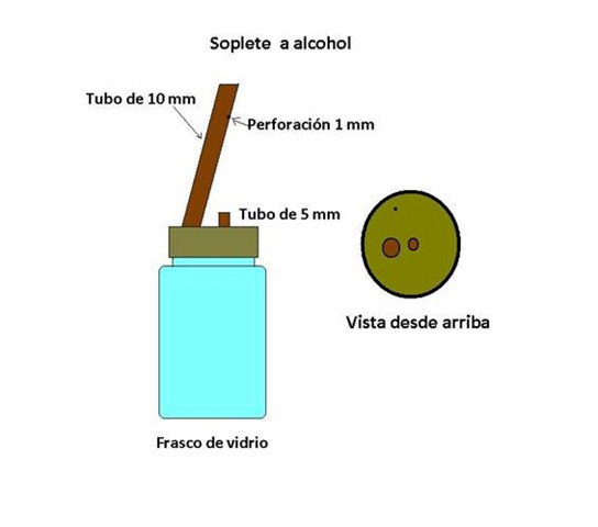 Se pone alcohol fino hasta la mitad del frasco y se espera que se absorba luego se enciende.